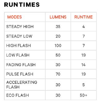 8 Licht Modis wählbar, einschliesslich garantierter Laufzeiten von bis zu 50 Stunden