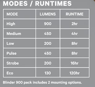 Federhärte: Blinder 900 inkl. Bar Mount & GoPro-Adapter, ohne Ladekabel