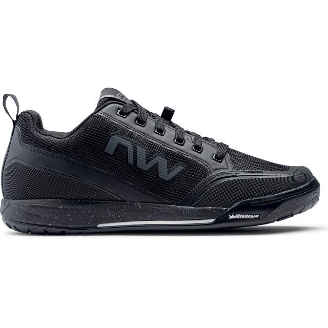 Sohle mit exklusivem Northwave Flat System speziell für totale Kontrolle. Das von Northwave und Michelin entwickelte Compound-Profil liefert unerreichten Grip auf dem Pedal