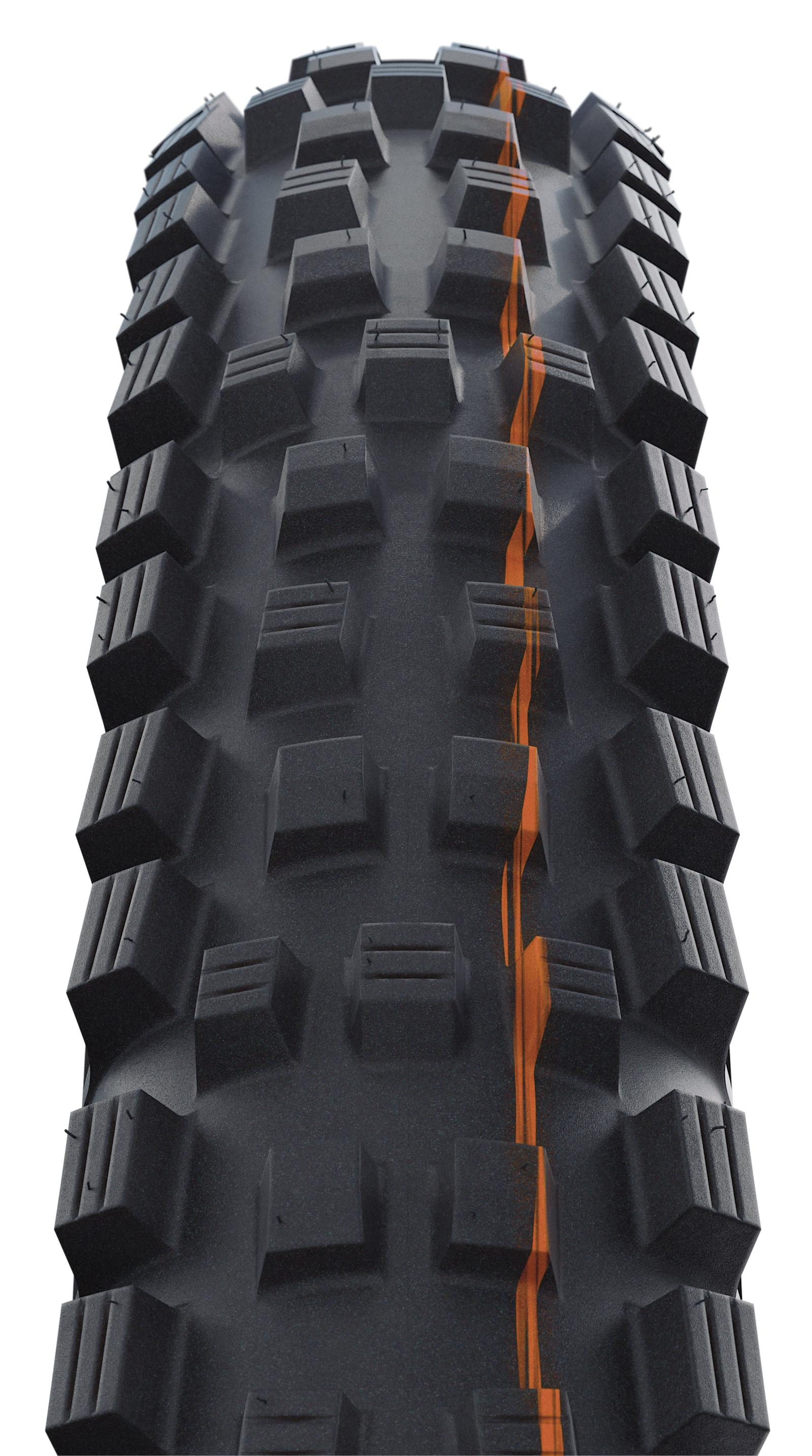 Starke Schulterstollen und ein aggressives, offenes Profildesign sorgen für maximale Bremstraktion und optimalen Kurvengrip