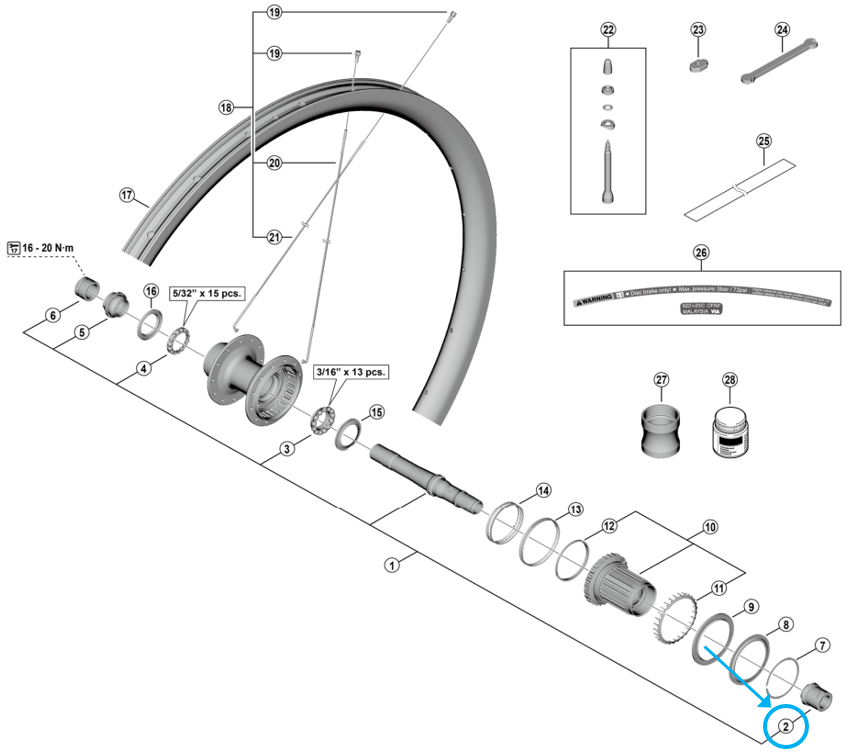 Shimano Kontermutter WH-RX880 hinten rechts