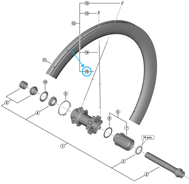Shimano Speiche WH-R8170-C50-TL-H 253mm hinten tubeless