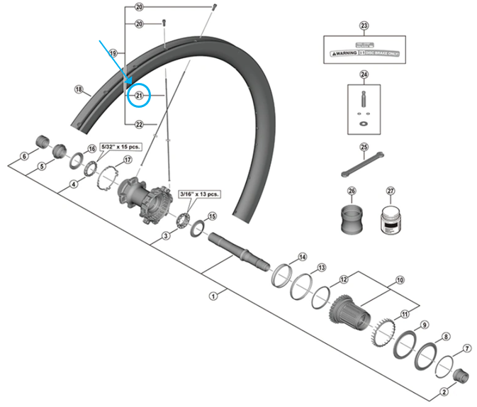 Shimano Speiche WH-R9270-C36-TU-V 285mm vorne-links collé