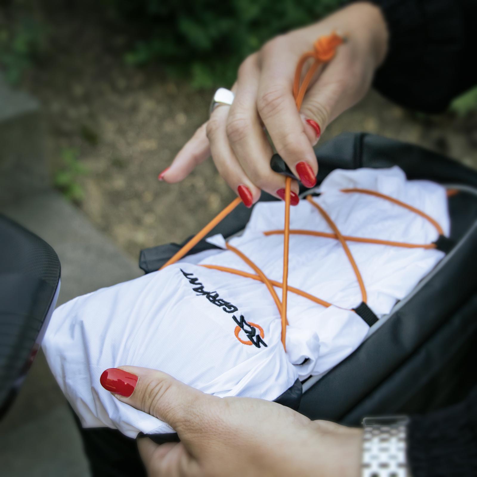 Das robuste Gewebe ist durch die geklebten Nähte absolut wasserdicht und reflektierende Elemente sorgen für noch mehr Sicherheit