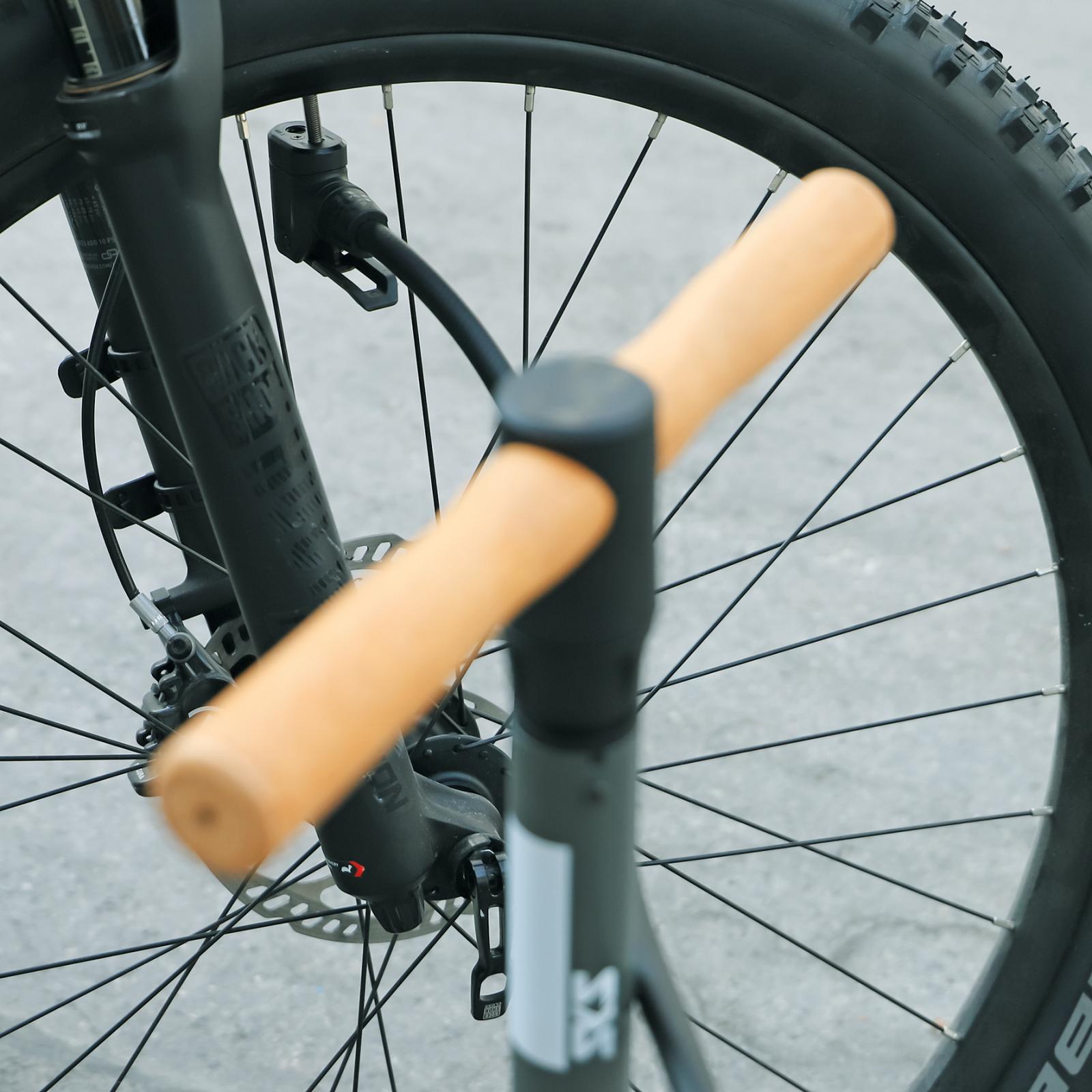 Der abdrehbare Griff aus Buchenholz und die gummierte, rutschfeste Alugussbasis garantieren ein müheloses Pumpen bis 16 bar