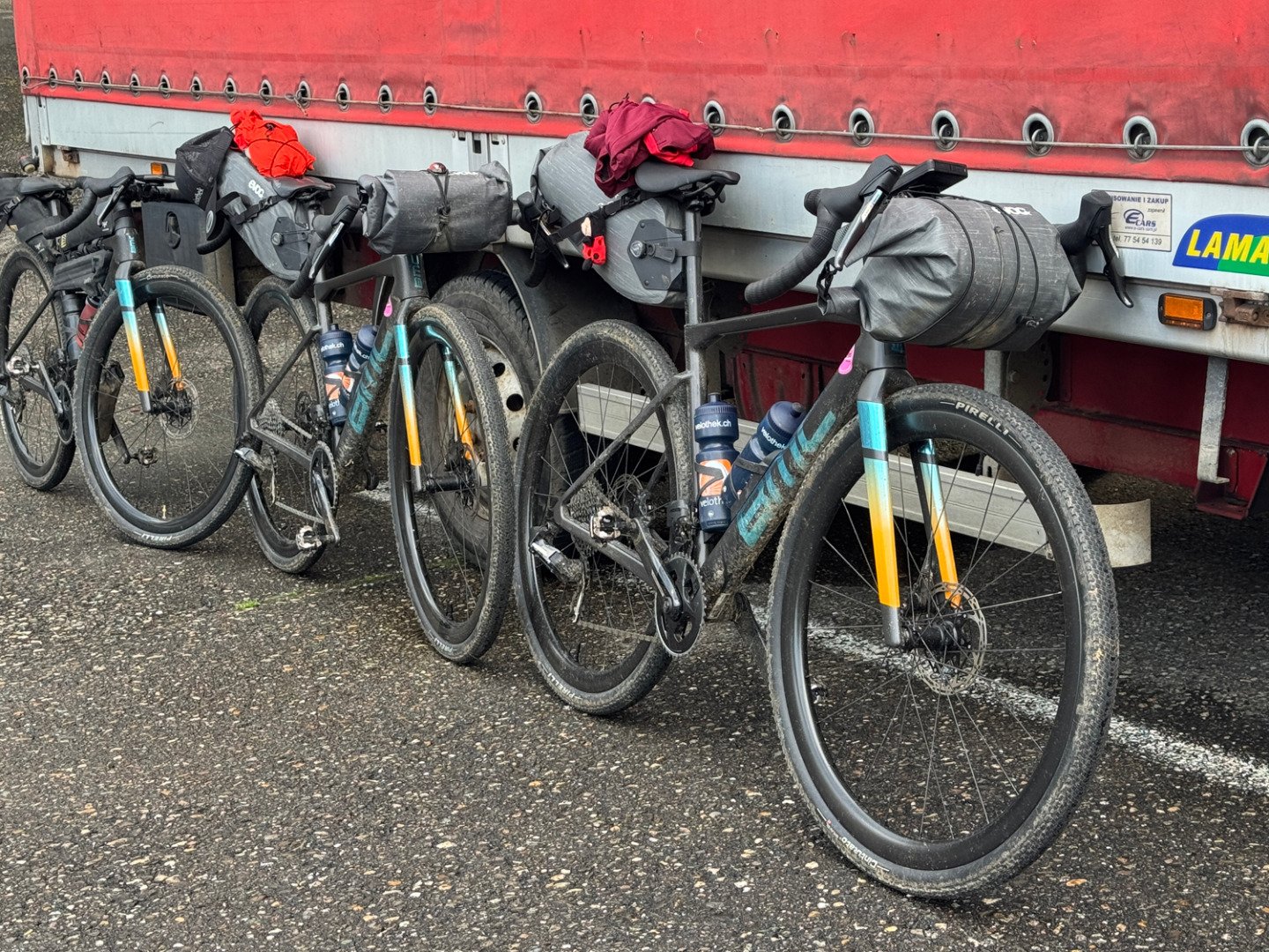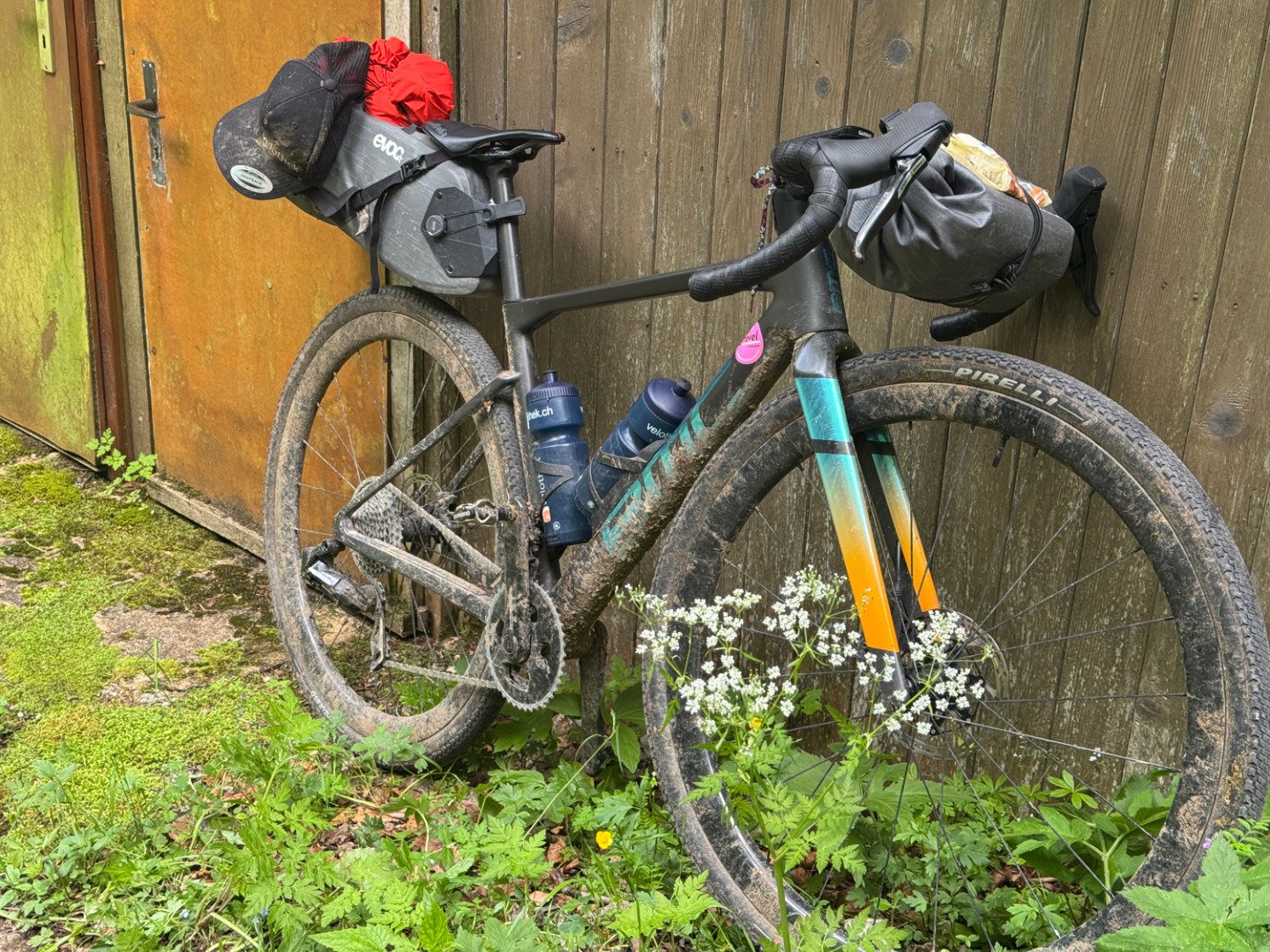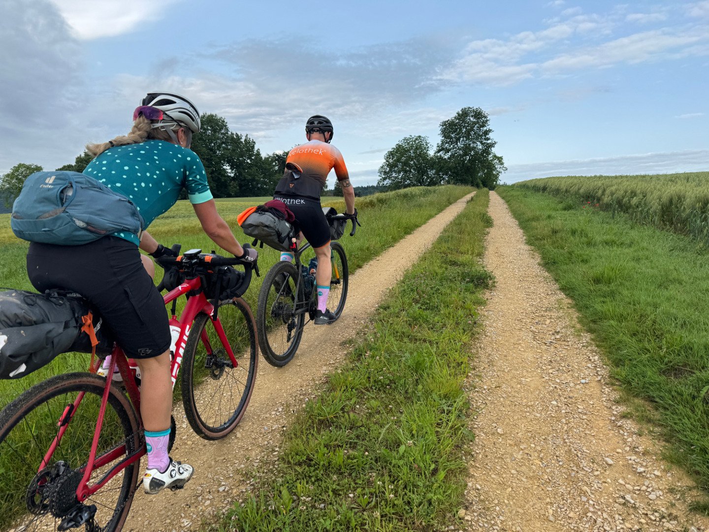 Bereits um 6 Uhr morgens rollten wir los – doch kaum losgefahren, meldete sich der erste und einzige Defekt der ganzen Tour: ein platter Reifen. Noch vor dem Kaffee mussten wir unser Werkzeug auspacken – aber das gehört wohl zu einem echten Bikepacking-Abenteuer dazu.