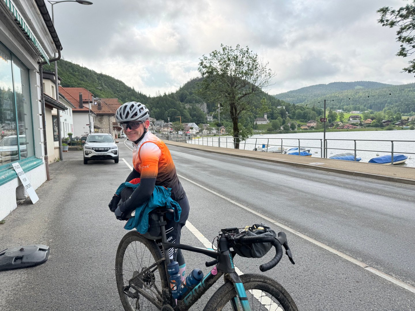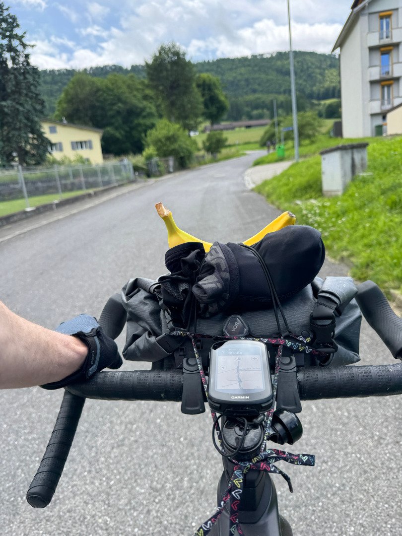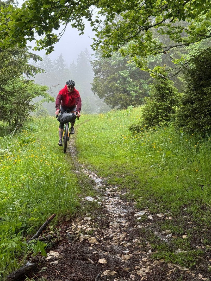Die Wiesenpassagen forderten unsere Technik. Mit Gepäck und wenig Profil auf den Reifen wurde es schnell rutschig – Konzentration war gefragt. Am Abend kämpften wir uns mit letzter Kraft den finalen Anstieg von Vallorbe nach Premier hoch. Im kleinen Bergrestaurant oben angekommen, gab’s nicht nur ein feines Abendessen, sondern auch das wohlverdiente Gefühl: Wir haben’s wieder geschafft. Unser Airbnb war gemütlich, die Gastgeber herzlich – und nach ein paar schönen Gesprächen fielen wir müde, aber zufrieden ins Bett.