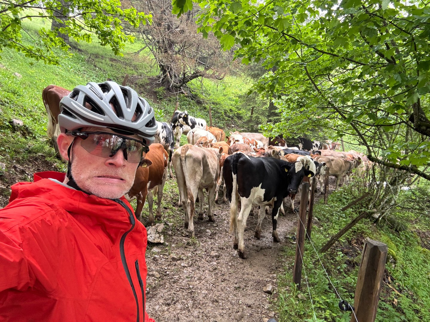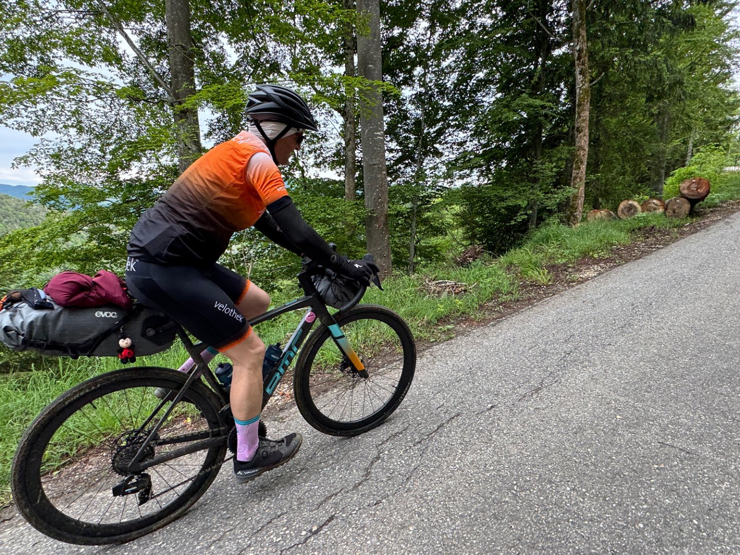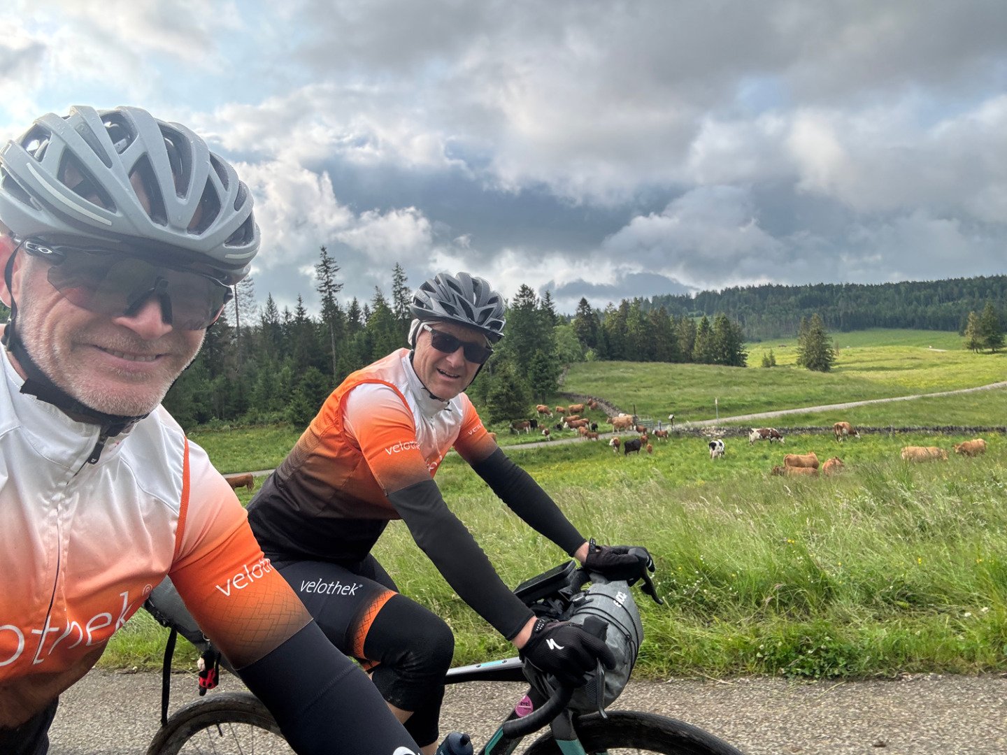 Die Wiesenpassagen forderten unsere Technik. Mit Gepäck und wenig Profil auf den Reifen wurde es schnell rutschig – Konzentration war gefragt. Am Abend kämpften wir uns mit letzter Kraft den finalen Anstieg von Vallorbe nach Premier hoch. Im kleinen Bergrestaurant oben angekommen, gab’s nicht nur ein feines Abendessen, sondern auch das wohlverdiente Gefühl: Wir haben’s wieder geschafft. Unser Airbnb war gemütlich, die Gastgeber herzlich – und nach ein paar schönen Gesprächen fielen wir müde, aber zufrieden ins Bett.