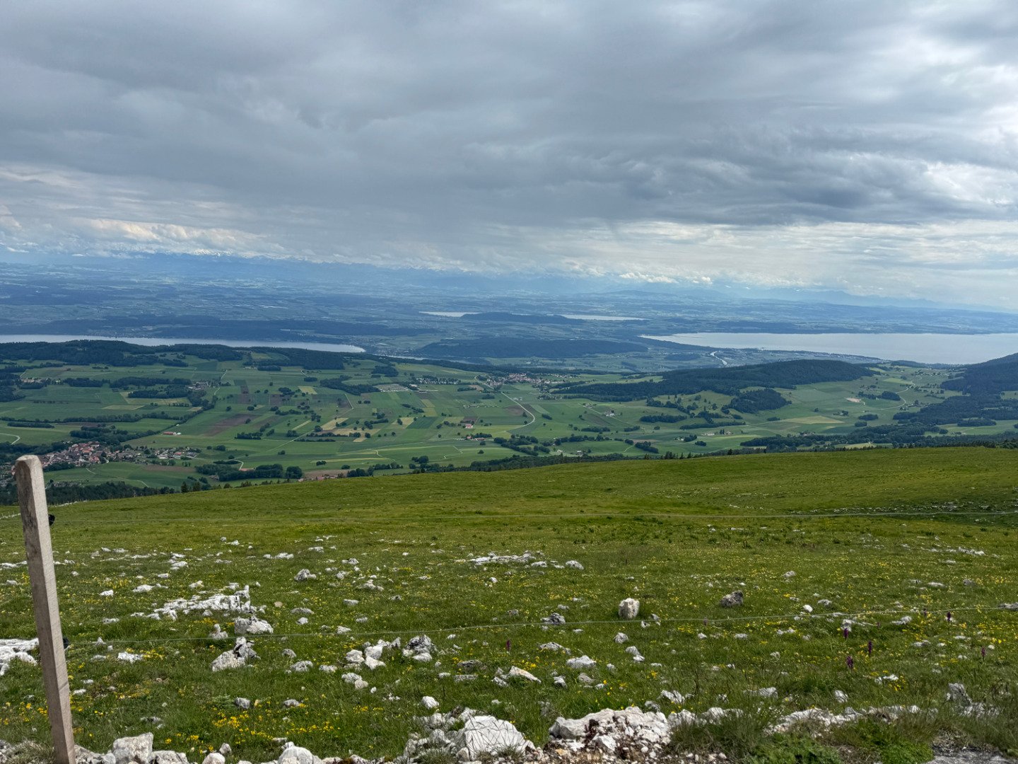 Der Aufstieg zum Chasseral hatte es in sich – steil, anstrengend, aber auch beeindruckend. Oben angekommen, zogen wir schnell warme Kleidung an und machten uns an die Abfahrt Richtung Vue-des-Alpes. Trinkwasser war rar – viele Brunnen waren leer, viele Häuser menschenleer. Umso erleichterter waren wir, als wir nur zwei Minuten vor einem heftigen Gewitter unser Airbnb erreichten. Glück im Timing – und ein sehr herzliches Willkommen beim Gastgeber.