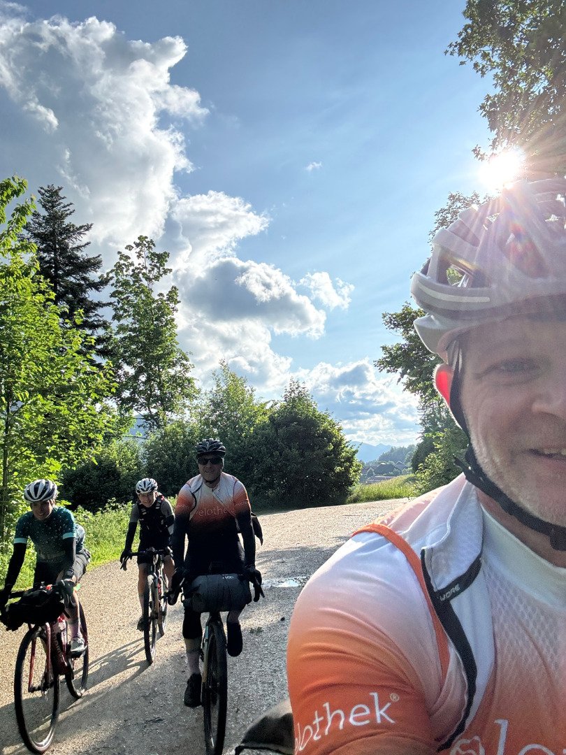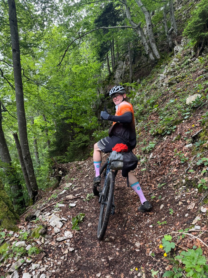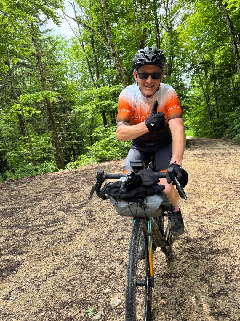 Das Gravel Trans Jura war intensiv, anstrengend – und unglaublich bereichernd. Wir mussten oft unsere Komfortzone verlassen. Trotz Müdigkeit, Kälte, Regen und brennenden Oberschenkeln haben wir jeden Tag gemeistert. Und wir würden es wieder tun – aber vielleicht mit etwas breiteren Reifen oder sogar einem MTB-Hardtail. Die Strecke war teilweise sehr technisch und oft tief im Wald – was bei Hitze sicher angenehm, aber bei Regen etwas eintönig ist. Ein paar mehr Ausblicke wären schön gewesen – aber das ist Meckern auf hohem Niveau.