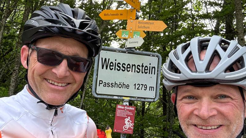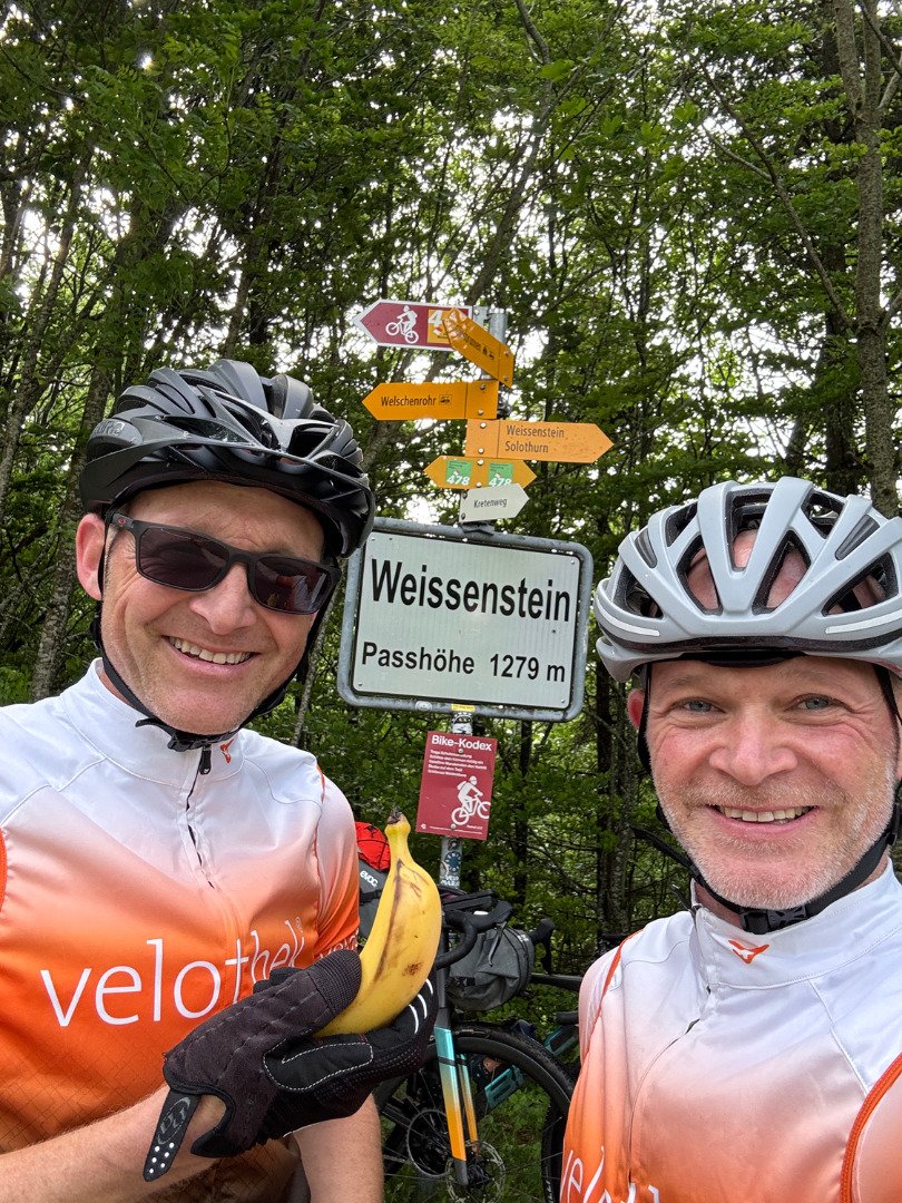 Der Himmel war leicht bewölkt, die Temperaturen angenehm. Die erste Etappe führte uns über Brugg, vorbei am Schloss Wartenfels, durch Balsthal bis nach Welschenrohr. Die ersten Kilometer waren wie gemacht fürs Einrollen. Wir trafen bereit bei der Anreise nach Baden auf Liliane und Edith – zwei Mitfahrerinnen, die ganz zufällig aus unserem Nachbarsdorf Mosnang kamen. Gemeinsam bewältigten wir einen teil der ersten 100 Kilometer – was für ein schöner Zufall und ein toller Start in dieses Abenteuer!