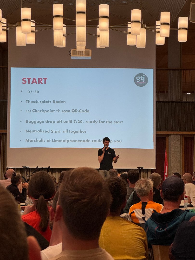 Ich (Stefan) hatte das Glück, zwei Startplätze zu gewinnen – und es war für mich sofort klar: Das mache ich nicht allein. Also haben wir uns gemeinsam ins Abenteuer gestürzt. Am Vorabend des Starts trafen sich alle Teilnehmenden zum obligatorischen Briefing in Baden. Die Spielregeln waren simpel: Nur bei Tageslicht fahren, alle Verkehrsregeln einhalten. Navigiert wird via App – Markierungen gibt’s keine. Jeder fährt in seinem eigenen Tempo, jeder entscheidet selbst, ob er die Strecke in zwei, drei, vier oder fünf Tagen meistern will. Wir planten vier Tage – mit Übernachtungen in Hotels oder Airbnbs. Ein bisschen Komfort darf sein.