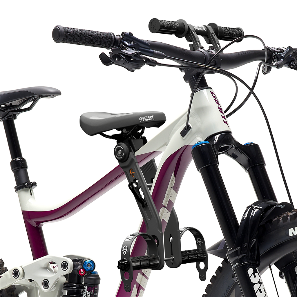 Der Shotgun 2.0 ist der ideale MTB-Kindersitz mit Schnellverschluss, der keine Änderungen am Fahrrad erfordert. Mit einstellbaren Fussrastenpositionen wächst der Shotgun 2.0 mit Ihrem Kind mit. In der Combo inkl. dem 2.0 Lenker.
