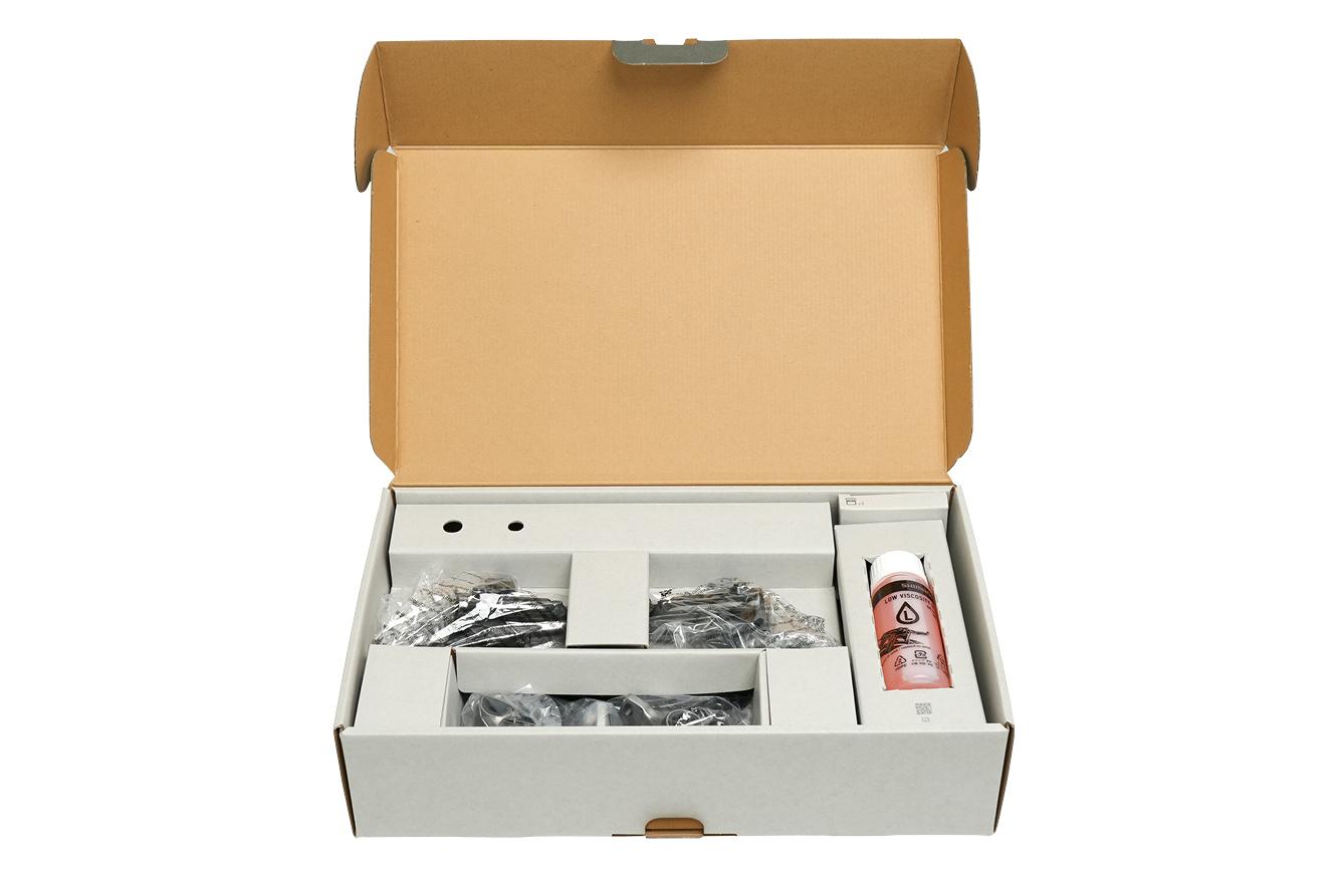 Federhärte: Brems-Set vorne und hinten mit BL-M9220 und BR-M9220, 2x Paar P04C (im Bremssattel), 2x Paar P03A (beigelegt), Mineralöl 100ml