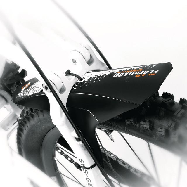 Das Schutzblech ist aus weichem, aber robustem Hochleistungskunststoff gefertigt, sodass es flexibel sowohl an der Gabel als auch am Hinterbau anhand der mitgelieferten Kabelbinder montiert werden kann.