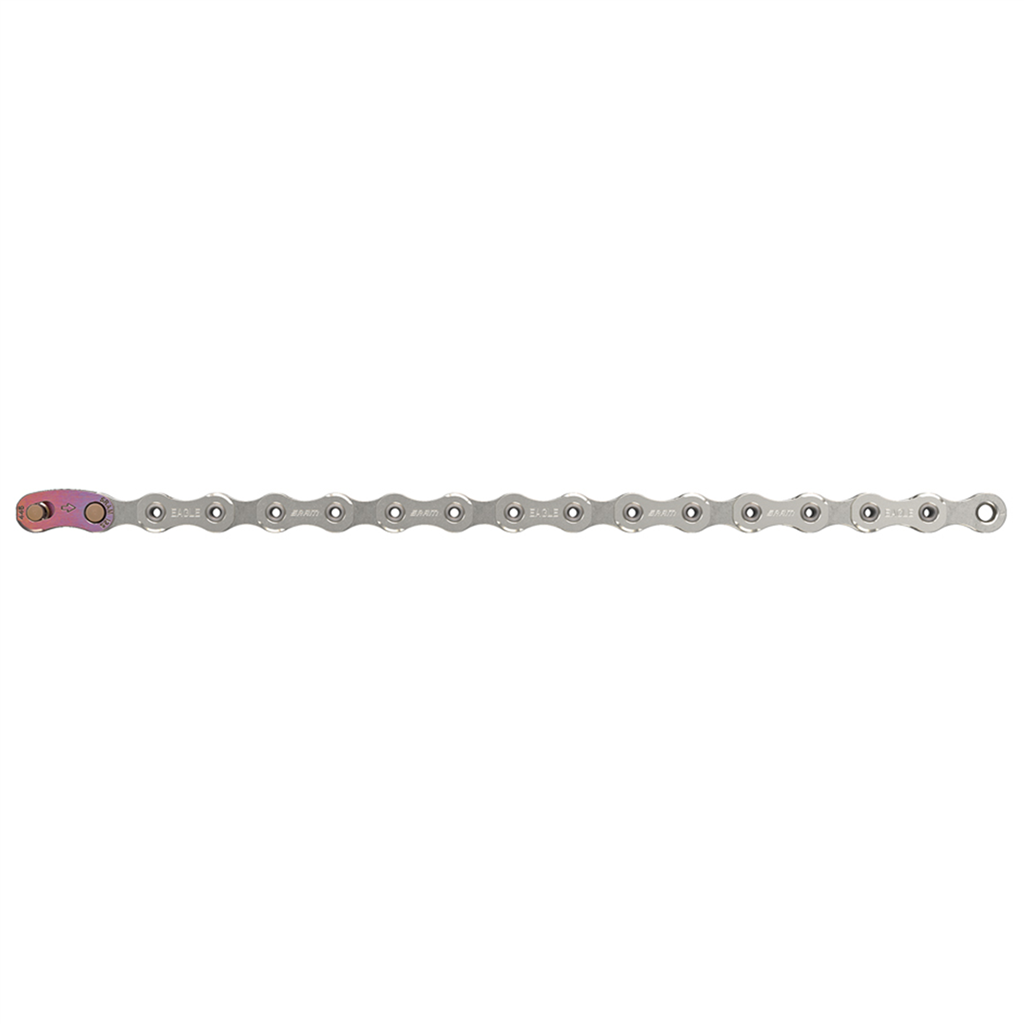 Von aussen sieht sie völlig normal aus, aber die Ingenieurleistung in dieser Kette macht eine Gangspreizung möglich, die man vorher nur von Zweifach-Antrieben kannte. Die Kette hat auch den grössten Anteil am super-seidigen, präzisen, schonenden und leisen Schaltverhalten des Eagle™-Antriebs. Die Kettenglieder haben einen glatten Radius, ohne scharfe Kanten oder Auskerbungen. Das verringert Kettengeräusche, Reibung und Verschleiss an Ritzeln und Kettenblättern deutlich. Durch die Verwendung flacherer Laschen sind die Vernietung und die gesamte Konstruktion besonders stabil. Eine HARD CHROME™-Beschichtung verlängert die Lebensdauer der Kette, bei gleichbleibend optimaler Leistung.
