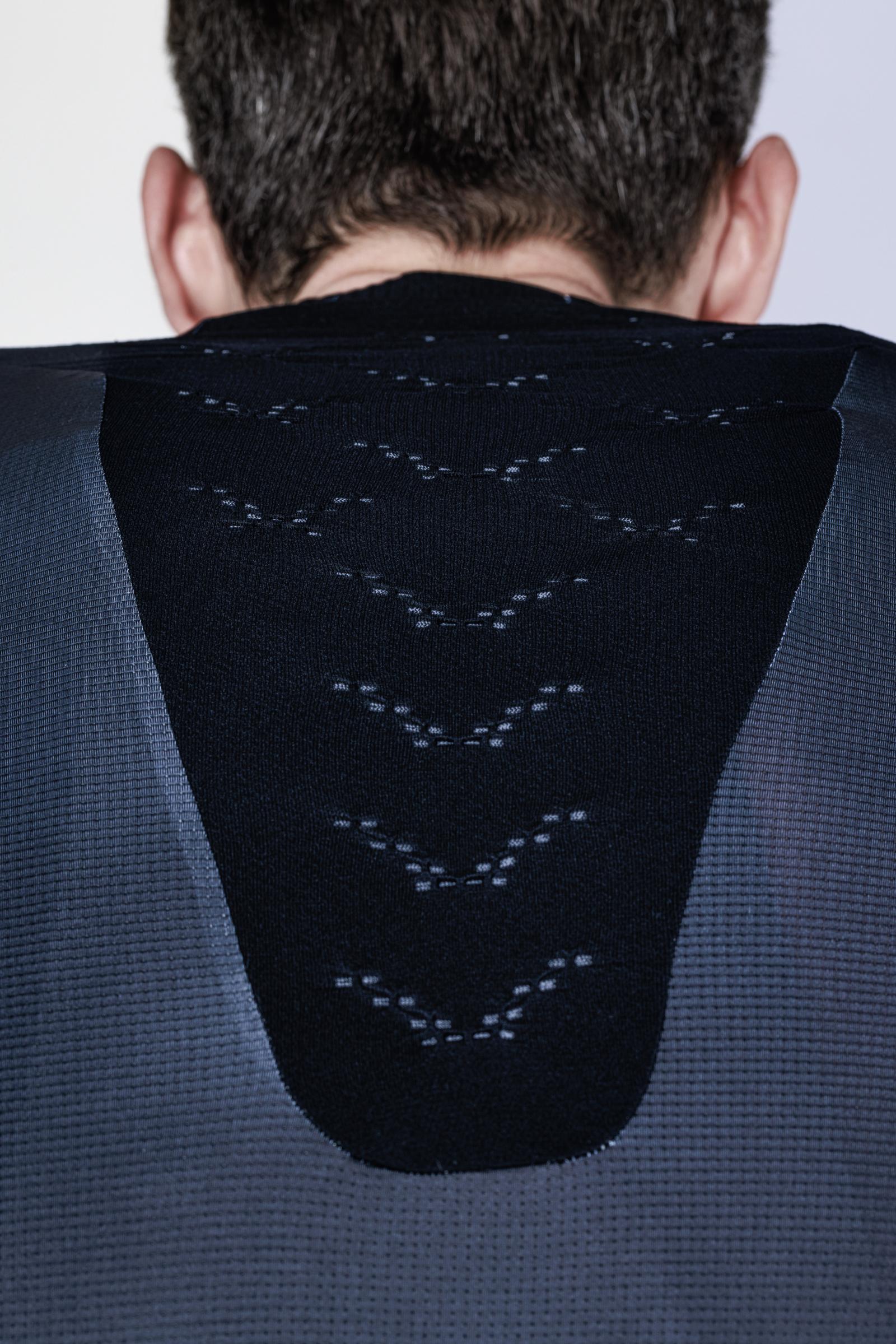 Das Trikot besteht aus vier verschiedenen hochwertigen italienischen Stoffen, die mit Hilfe der Body-Mapping-Technologie strategisch platziert wurden und eine optimale Aerodynamik, Belüftung und Temperaturkontrolle bieten.